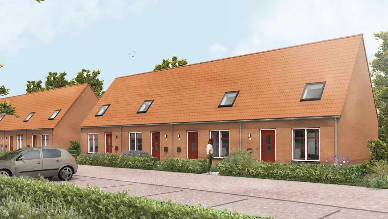 Bij het ontwerp is bewust gekozen voor een uitstraling die aansluit bij de bestaande wijk. De woningen worden uitgevoerd in rode baksteen met een rood pannendak, witte kozijnen en een groene voordeur. Zo passen de nieuwe huizen perfect in het vertrouwde straatbeeld van Garyp.